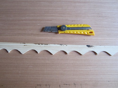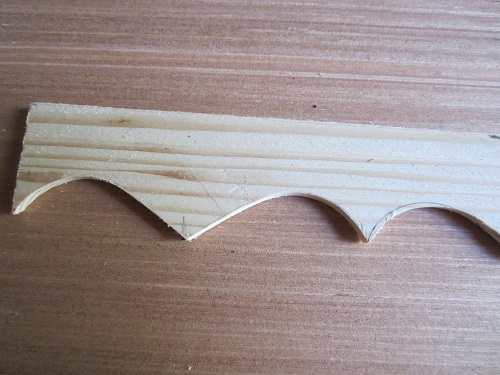 ce gabarit m'a permis de découper des bandes de bardeaux . Voici plus de précision des courbes .